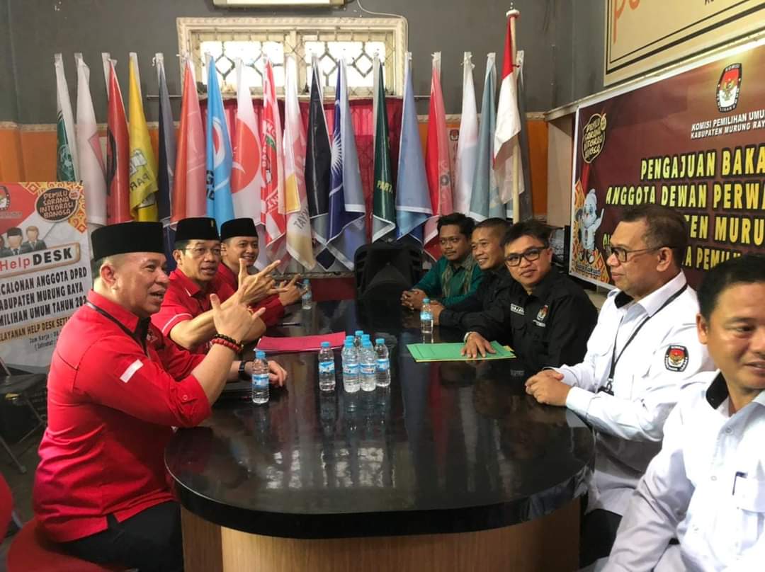 PURUK CAHU, sinarbarito.com – Dalam rangka pemilihan serentak Dewan Perwakilan Rakyat Daerah (DPRD) tingkat Kabupaten tahun 2024 mendatang, Kali ini PDIP Perjuangan Murung Raya Partai Politik yang pertama mendaftarkan Bacaleg ke KPU Kabupaten Murung Raya Provinsi Kalimantan Tengah Kalteng pada, Kamis, (11/05/2023).