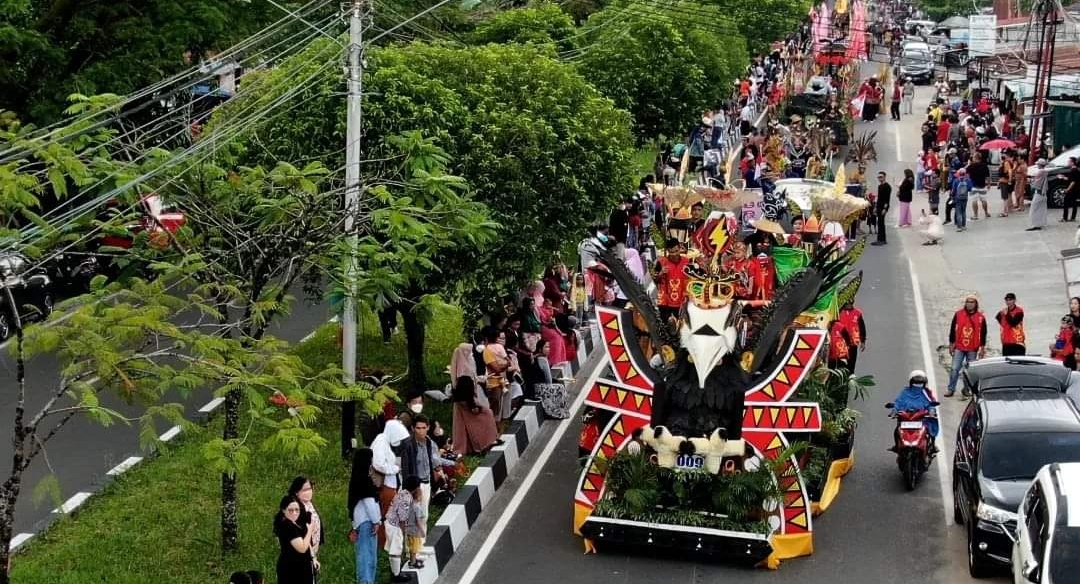 PURUK CAHU, sinarbarito.com – Kontingen Kabupaten Murung Raya dalam karnaval budaya pada Festival Budaya Isen Mulang (FBIM) 2023 sekaligus memperingati Hari Jadi ke-66 Provinsi Kalimantan Tengah menyedot perhatian ribuan masyarakat yang menonton, suguhan tari-tarian, atraksi seni, dan budaya serta mobil hias di jalan Yos Sudarso Area TVRI Palangka Raya, Rabu (24/5/2023).Karnaval itu mengusung tema, “Legenda Polangka Bulo dan Suku Dayak Siang” yakni manusia-manusia yang mendalami pulau Kalimantan saat ini. Sebagian besar meyakini bahwa orang Dayak merupakan keturunan Tolu/Telu Raja yaitu keturunan Maharaja Bunu, Maharaja Sangen dan Maharaja Sangiang yang mana dalam penitisan langsung dari Tuhan Yang Maha Esa.