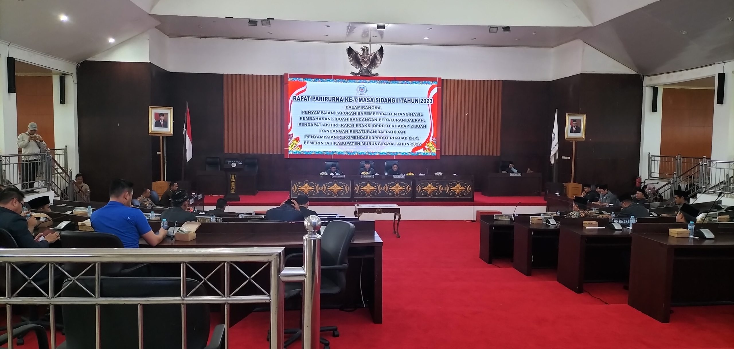 Pada rapat paripurna ke 7 masa sidang I tahun 2023 dengan agenda penyampaian laporan Bapemperda tantang hasil pembahasan dua buah rancangan peraturan daerah dan pendapat akhir prkasi-praksi DPRD terhadap dua rencangan perda serta penyampaian rekomendasi DPRD terhadap LKPJ Pemerintah Murung Raya tahun 2022, dipimpin ketua DPRD Murung Raya, Dr. Doni, SP. M.Si, dan juga di hadiri Wakil Bupati Murung Raya Rejikinnor dan sejumlah anggota DPRD Mura.