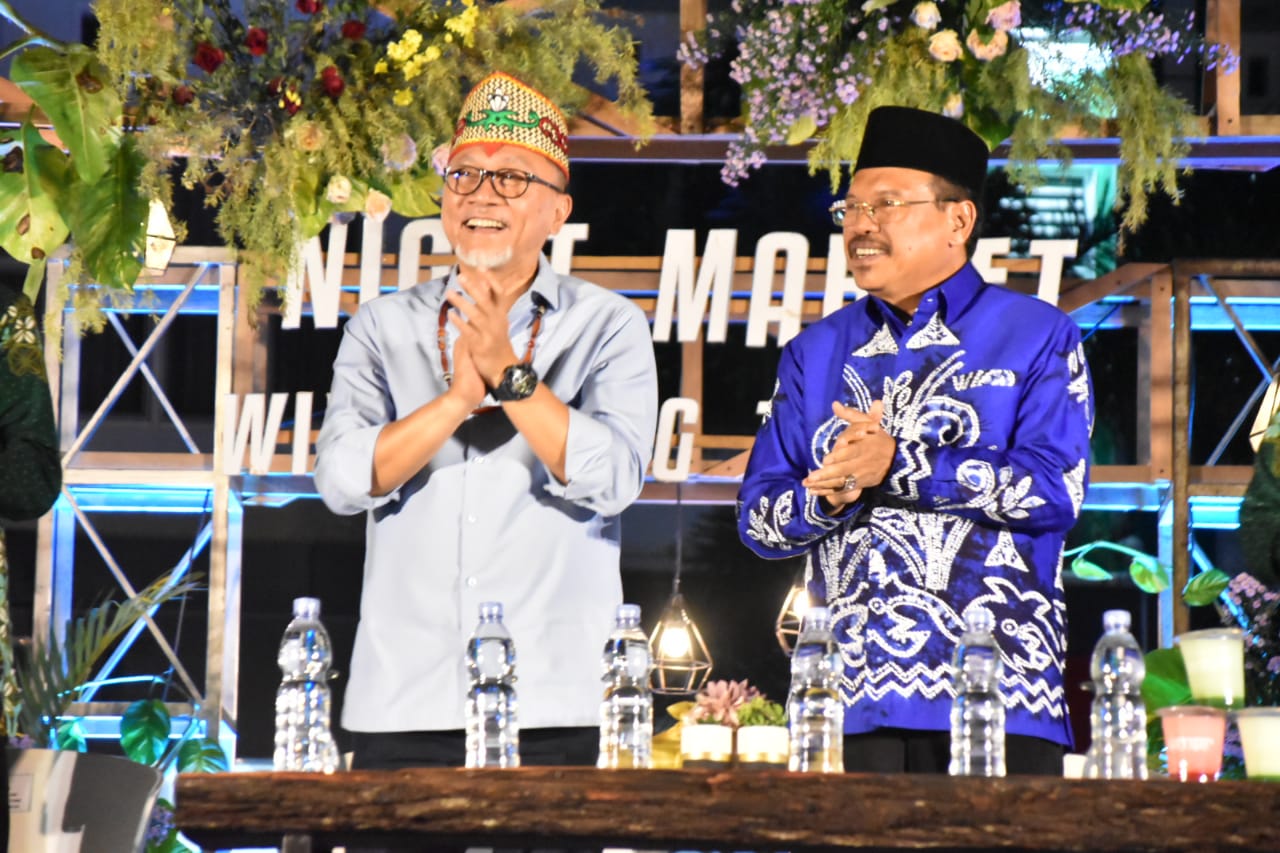 PALANGKA RAYA, sinarbarito.com – Sekretaris Daerah Provinsi Kalimantan Tengah (Prov. Kalteng) H. Nuryakin hadiri Night Market dan Hasupa, Hasundau bersama Menteri Perdagangan Republik Indonesia (RI) Zulkifli Hasan, bertempat di Kampus Universitas Muhammadiyah Palangka Raya, Jumat (2/6/2023) malam. Acara ini diinisiasi oleh Mahasiswa Universitas Muhammadiyah Palangka Raya.Dalam Bazar Night Market ini, kurang lebih ada 100 stand atau lapak disediakan, terutama bagi para mahasiswa, untuk dapat memasarkan produk-produknya, baik kuliner maupun kerajinan.