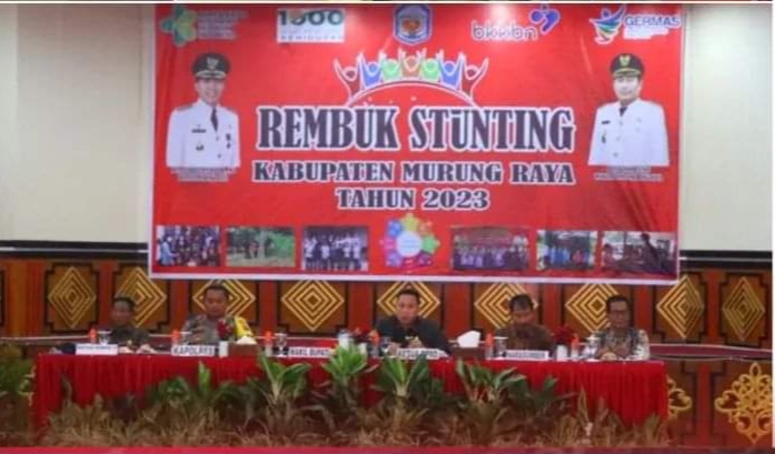 PURUK CAHU, sinarbarito.com – Bertempat di gedung pertemuan umum Tira Tangka Balang Puruk Cahu, Selasa (11/7/2023), Pemerintah Daerah Kabupaten Murung Raya Kalimantan Tengah menggelar rapat rembuk stunting bersama sejumlah Camat dan Kepala Desa se- Murung Raya. Rembuk Stunting ini dibuka langsung oleh Wakil Bupati Murung Raya Rejikinnor, S.Sos.Rejikinnor mengatakan, rembuk stunting merupakan suatu langkah penting yang harus dilakukan Pemerintah Kabupaten/ Kota untuk memastikan pelaksanaan rencana kegiatan intervensi pencegahan dan penurunan stunting.