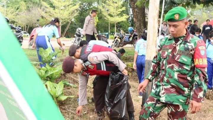 PURUK CAHU, sinarbarito.com – Kapolres Murung Raya, Polda Kalimantan Tengah bersama TNI dan Instansi terkait serta elemen masyarakat secara serentak melaksanakan kegaitan gotong royong pembersihan sampah di wilayah Kabupaten Murung Raya, Kamis (13/07/2023) sejak pagi.