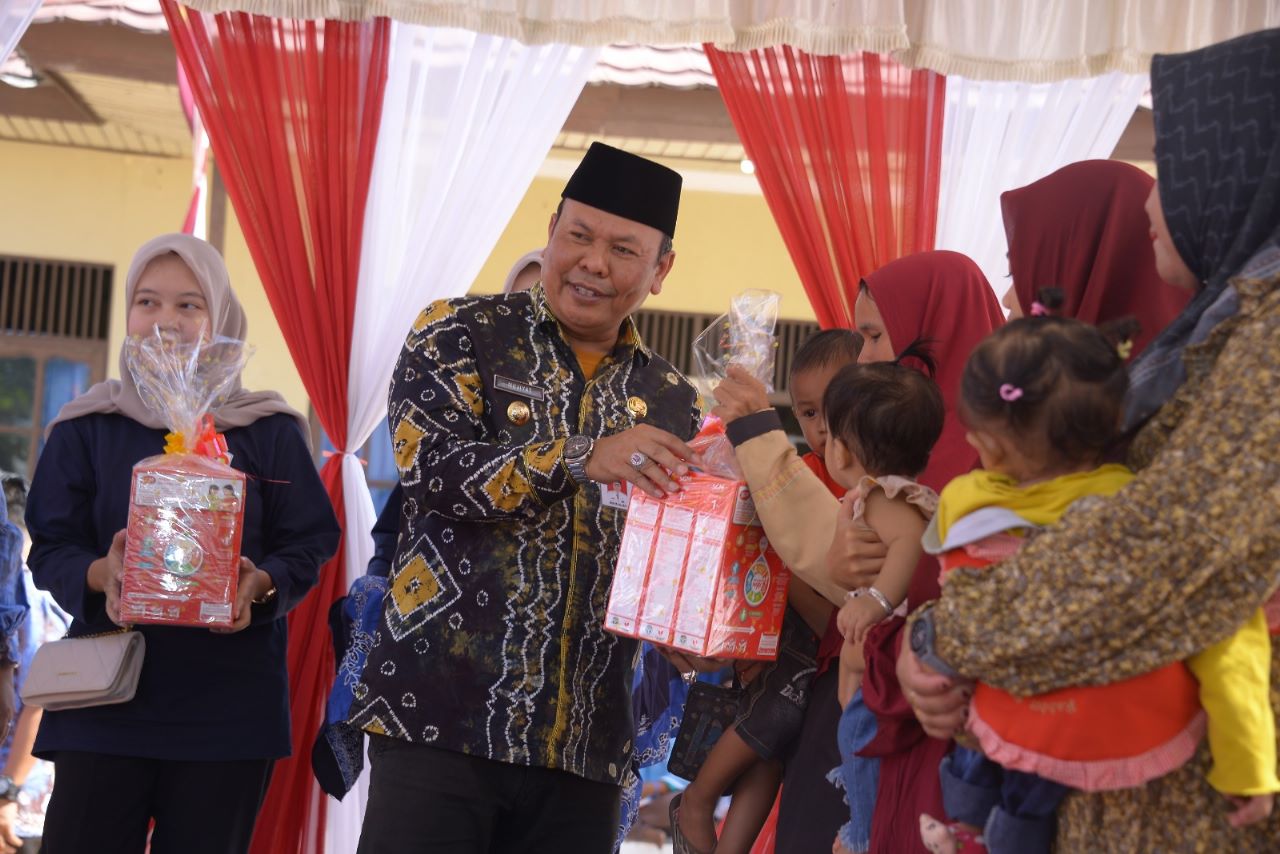 Kegiatan yang digagas oleh BKKBN Kalsel dan Kalteng ini turut diserahkan pula secara simbolis bantuan untuk keluarga beresiko stunting dan anak-anak yang terindikasi stunting oleh Pj. Bupati Mujiyat, Sekda Kapuas Septedy, Staf Ahli Bid. Kemasyarakatan Husnul Khatimah, BKKBN Kalsel dan BKKBN Kalteng.