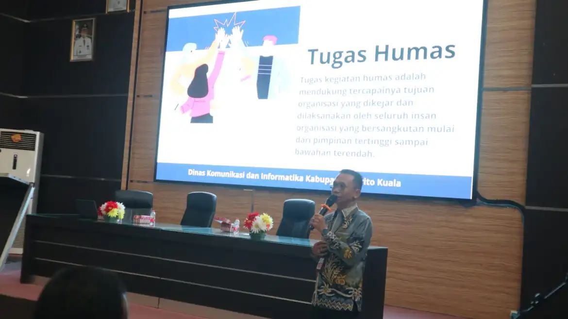Adapun narasumber Bimtek Admin Kehumasan adalah Kepala Dinas Kominfo Kabupaten Batola, Hery Sasmita. Dalam paparannya, Hery menjabarkan beberapa hal fungsi dari seorang humas juga tugas admin kehumasan pada pengelolaan website PPID, SKPD, Lapor dan media sosial SKPD.