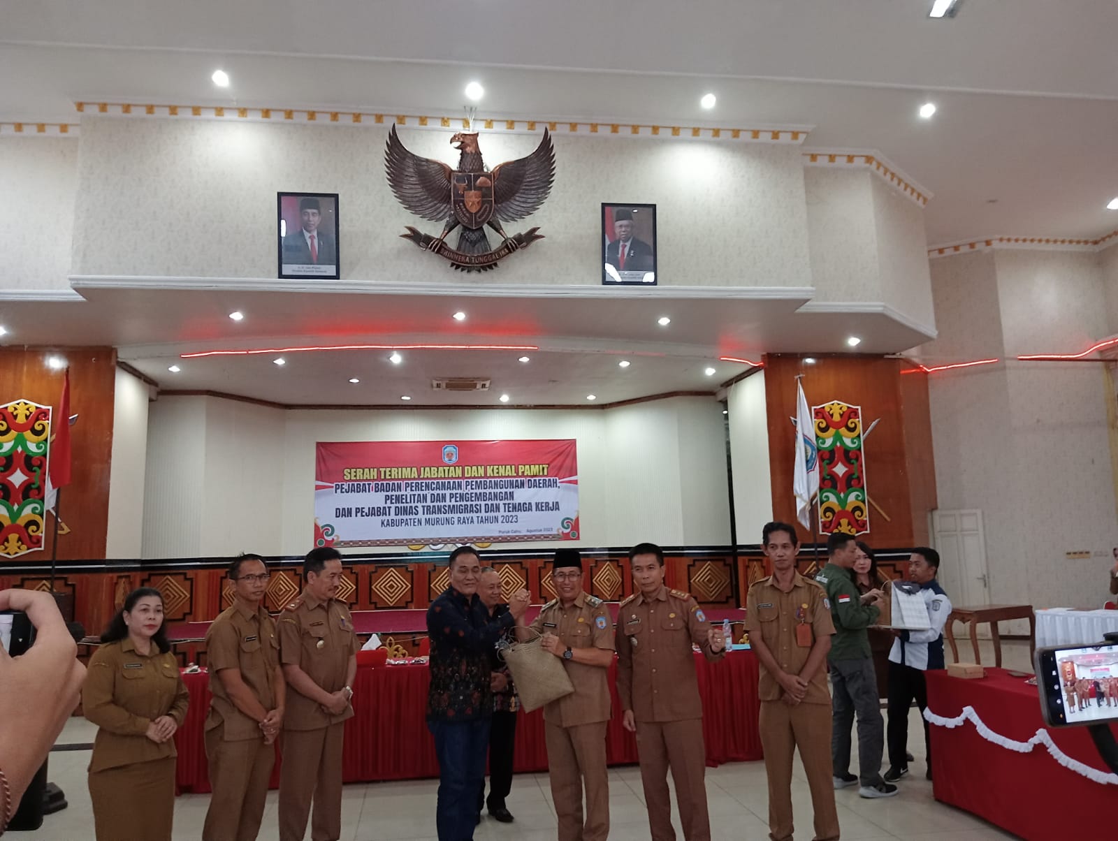 Serah terima jabatan dipimpin Wakil Bupati Murung Raya, Rejikinoor serta turut dihadiri Sekda Murung Raya, Drs. Hermon dan jajaran Bappedalitbang dan Distransnaker, di GPU Tira Tangka Balang, Selasa (8/8/2023).