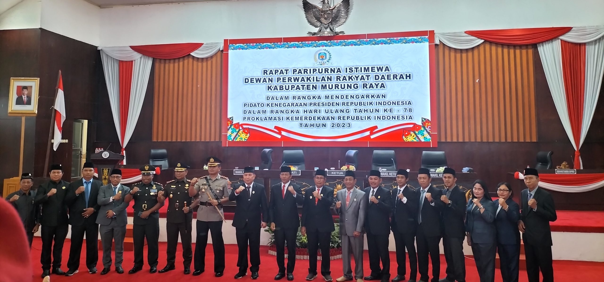 PURUK CAHU, sinarbarito.com – Anggota Dewan Perwakilan Rakyat Daerah (DPRD) Kabupaten Murung Raya, Kalimantan Tengah bersama pemerintah daerah setempat menggelar rapat istimewa mendengar pidato Presiden Republik Indonesia Ir Joko Widodo.
