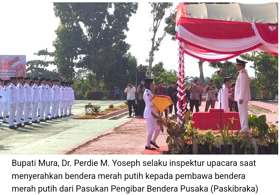 PURUK CAHU, sinarbarito.com – Bupati Kabupaten Murung Raya, Provinsi Kalimantan Tengah, Dr. Drs. Perdie M. Yoseph, M.A, secara langsung pimpin upacara Hari Ulang Tahun Kemerdekaan Republik Indonesia HUT- RI ke 78 tahun 2023 di halaman hijau kantor bupati Puruk Cahu, Kamis (17/8/2013) pagi.