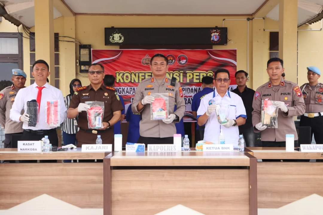 Pada Konferensi pers itu Kapolres Murung Raya didampingi Ketua BNK Murung Raya Rejikinoor, S.Sos, Kajari Murung Raya Kosasih, S.H., M.H, Wakapolres Kompol Syamsurizal Prima, S.I.K, dan Kasat Narkoba Iptu Arif Dany Susanto, S.H., M.H.