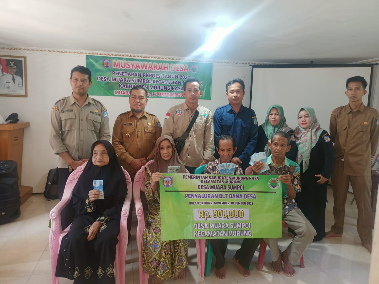 PURUK CAHU, sinarbarito.com- Pemerintah Desa Muara Sumpoi, Kecamatan Murung, Kabupaten Murung Raya kembali menyerahkan Bantuan Langsung Tunai dari Dana Desa tahun Anggaran 2023 kepada 50 Keluarga Penerima Manfaat (KPM).