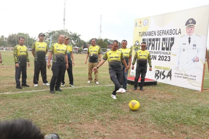 MARABAHAN, sinarbarito.com – Dinas Kepemudaan, Olahraga, Budaya, dan Pariwisata Kabupaten Barito Kuala (Disporbudpar Batola), Kalimantan Selatan menggelar Turnamen Sepak Bola Bupati Cup ke- IX Tahun 2023. Sekretaris Daerah Kabupaten Barito Kuala (Sekdakab Batola) Zulkipli Yadi Noor mengucapkan terima kasih serta apresiasi kepada Disporbudpar Batola, KONI dan PSSI Batola serta panitia pelaksana atas bergulirnya kembali Turnamen Sepak Bola Bupati Cup ke- IX Tahun 2023.
