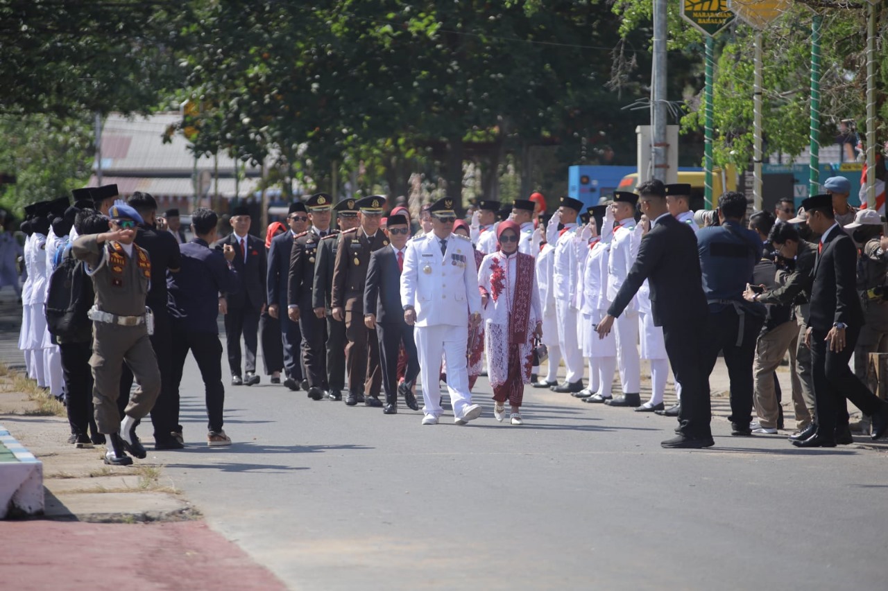 Bertindak sebagai Inspektur Upacara adalah Penjabat (Pj) Bupati Batola, Mujiyat, sedang Perwira Upacara dipercayakan kepada AKP Vidi Zulkipli, sementara Komandan Upacara Ipda Indra Purwadi Soemar. Adapun peserta upacara dari berbagai kalangan masyarakat, seperti pelajar, TNI/Polri, ASN, Polsuspas, maupun organisasi kemasyarakatan di Batola.