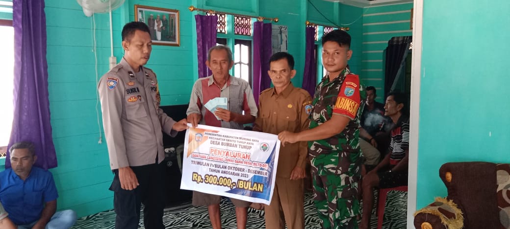 Seperti, Desa Bumban Tuhup sebanyak 46 Keluarga Penerima Manfaat sudah di serahkan oleh Pemerintahan Desa tahap akhir. ” Dari bulan Oktober sampai bulan Desember 2023 dengan rincian masing-masing penerima selama tiga bulan sebesar Rp 900.000,” ungkap Babinsa Praka Lusius Jumadi kepada awak media, Jumat (20/10/2023).Pada saat penyarahan itu, Kades Bakti menyampaikan harapanya kepada masyarakat yang telah meneriman bantuan langsung tunai dari Pemerintah Pusat itu agar dapat di pergunakan sebagaimana mestinya.