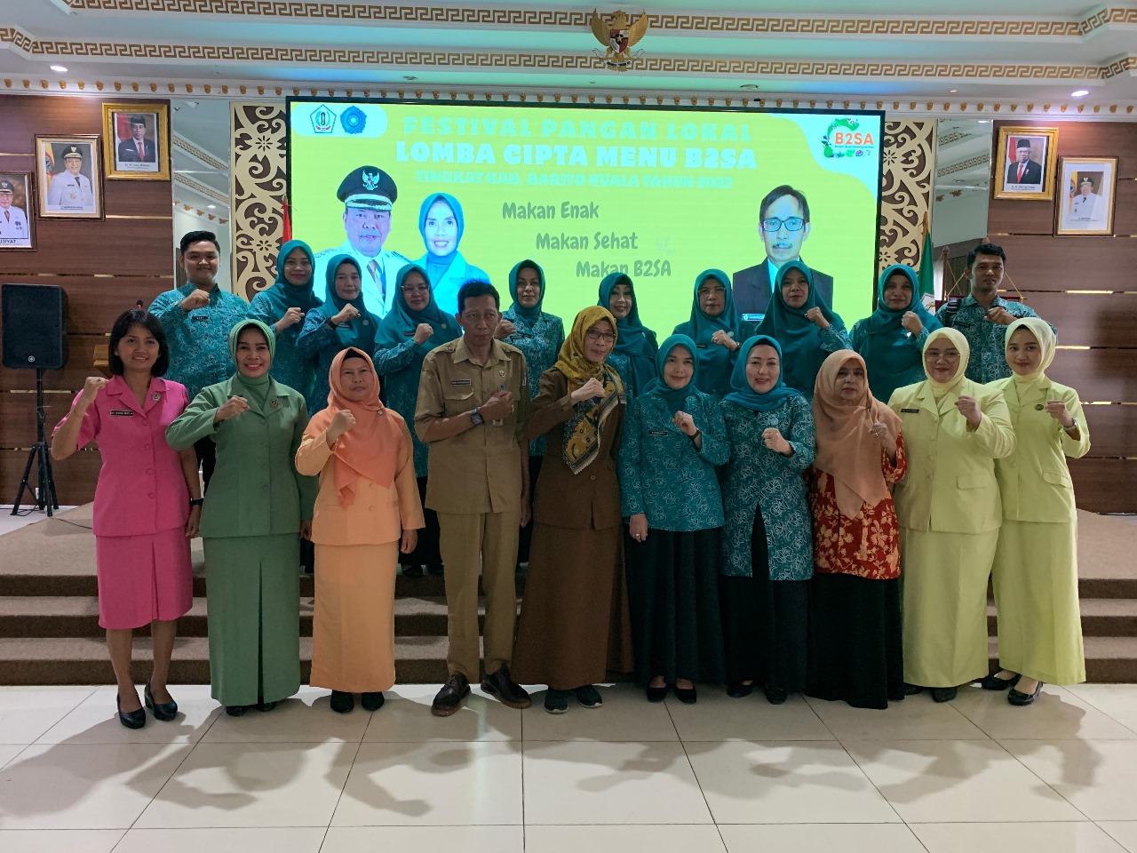 Untuk mewujudkan sumber daya manusia berkualitas melalui keragamana konsumsi pangan yang bergizi seimbang dan aman. Adapun Lomba Cipta menu B2SA dimenangkan oleh Juara 1 kecamatan Alalak, Juara 2 kecamatan Marabahan dan Juara 3 kecamatan Tabunganen. (adv/sb).