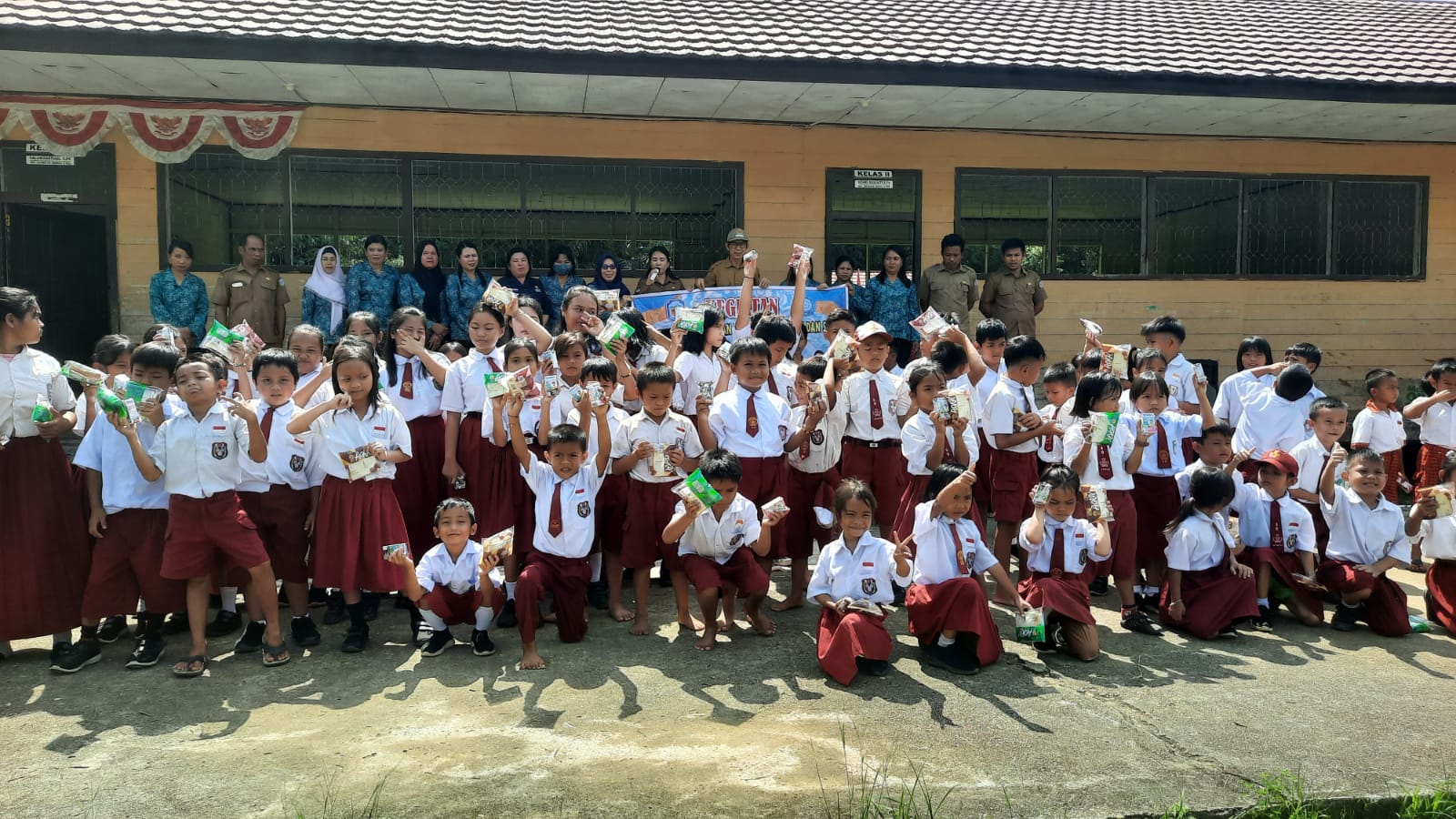 “Kita memberikan susu dan makanan tambahan kepada anak-anak SD dan TK agar pertumbuhan mereka di masa depan dapat menjadi anak-anak yang cerdas dan berkualitas,” terang Ibu Kades selaku ketua TP PKK Desa Olung Hanangan.