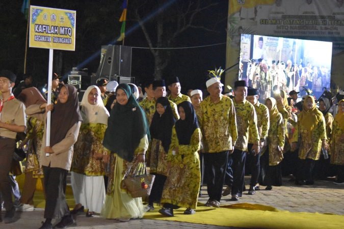 “Melestarikan dan membudayakan kecintaan masyarakat terhadap seni baca tulis Al Quran yang utamanya mampu mengamalkan dalam kehidupan sehari-hari,” ucapnya. Malam pembukaan yang berlangsung meriah dengan nuansa Islami itu dalam sambutannya Pj. Bupati Mujiyat mengatakan Musabaqah Tilawatil Qur’ani adalah sebagai syiar isalm yang dilaksanakan dengan bahagia dan penuh rasa cinta.