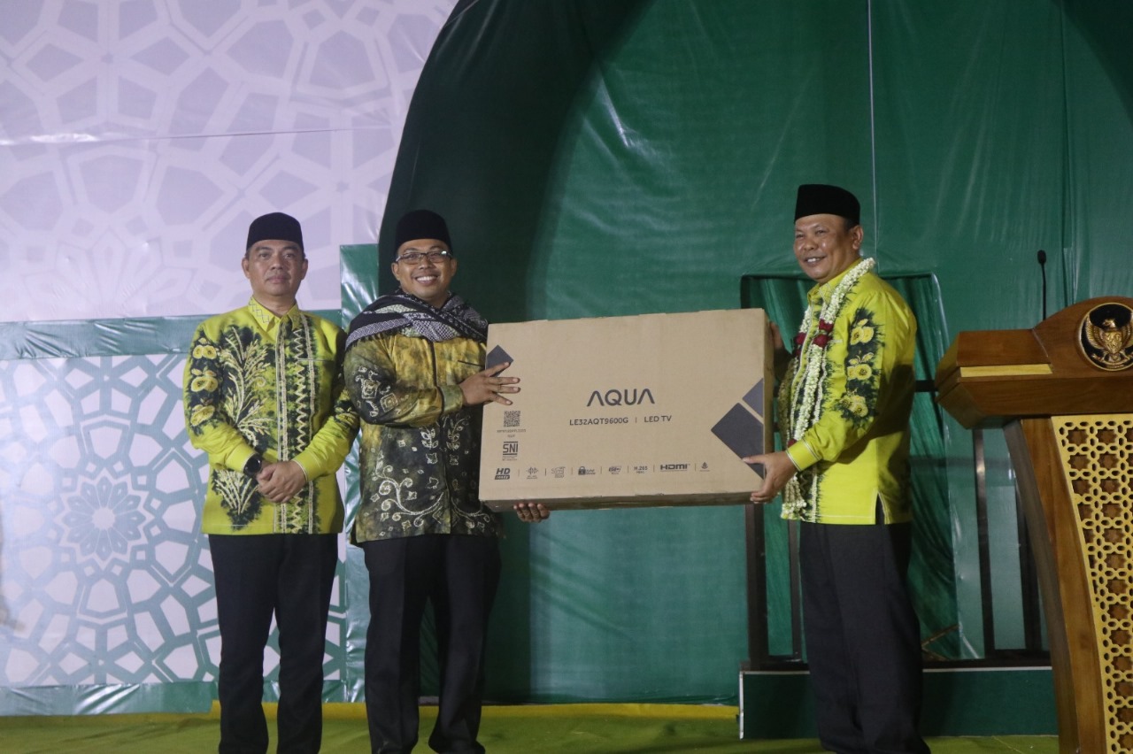 Kemudian dalam kesempatan yang sama Mujiyat bersama Zulkipli membagikan hadiah langsung berupa Sepeda dan Televisi kepada dua orang kafilah. Mujiyat katakan panitia setiap malamnya akan membagikan hadiah bagi pengunjung. “Pembagian hadiah merupakan rasa syukur dan bahagia atas terlaksananya MTQ di Barito Kuala yang merupakan syiar Islam untuk mencintai Al Qur’an,” pungkas Mujiyat. (adv/sb).