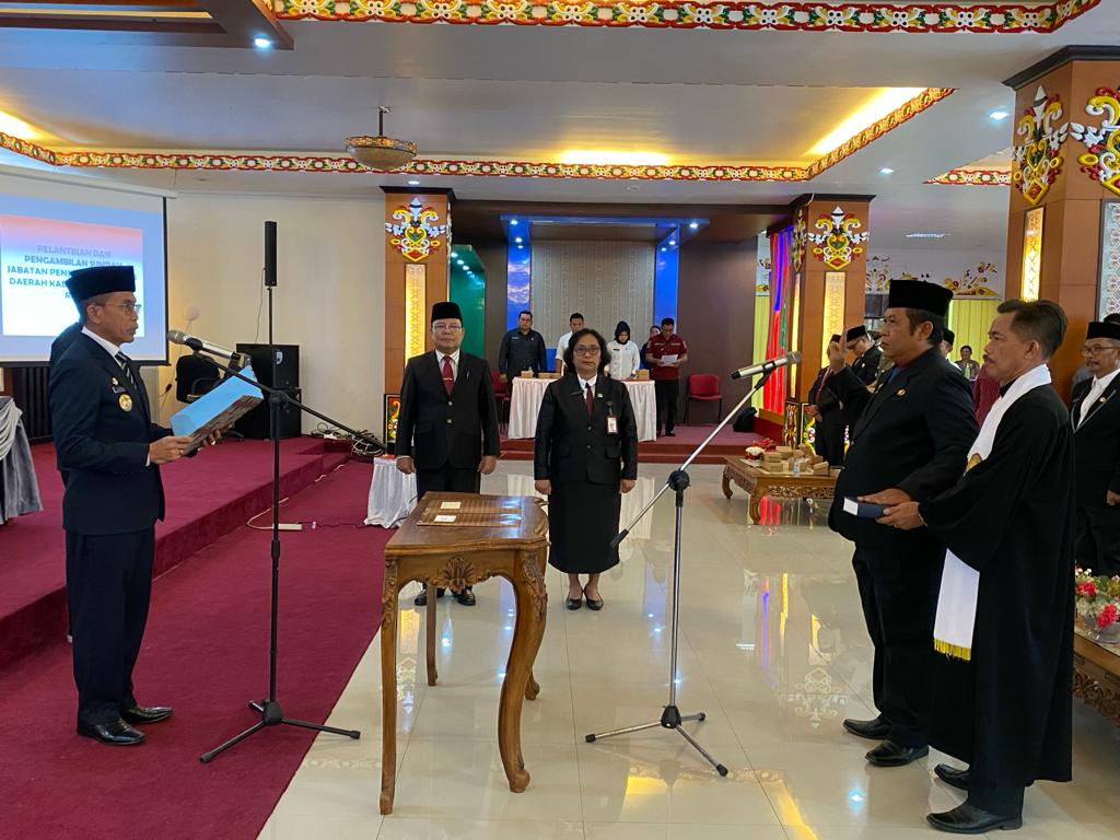 Pj. Bupati Murung Raya, Hermon saat melantik Rudie Roy, sebagai Pj Sekda Murung Raya.