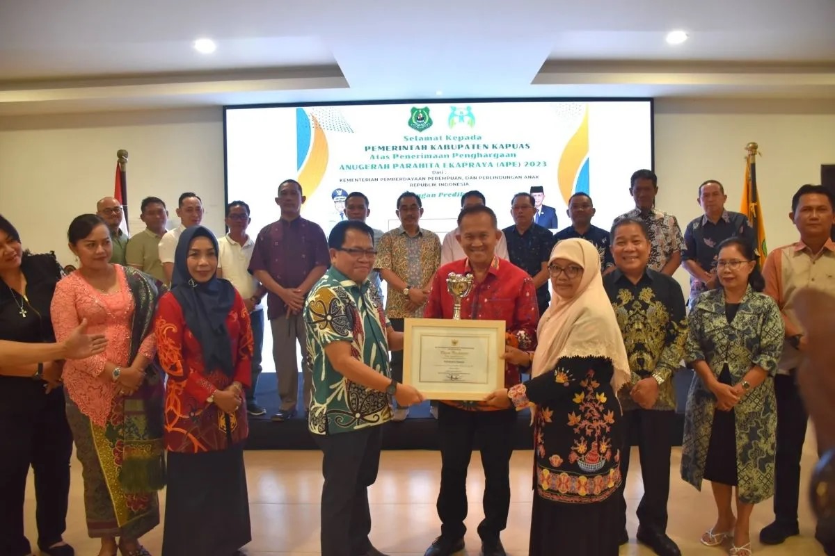 KUALA KAPUAS, onlinesinarbarito.com – Pemerintah Kabupaten Kapuas, Provinsi Kalimantan Tengah, menerima penghargaan Anugerah Parahita Ekapraya tahun 2023 Kategori Madya dari Kementerian Pemberdayaan Perempuan dan Perlindungan Anak (KPPPA) Republik Indonesia.