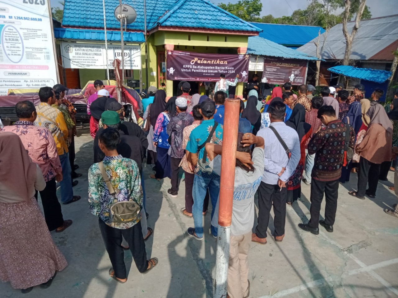 MARABAHAN, onlinesinarbarito.com – Dalam rangka menjelang pemilihan umum (Pemilu) tahun 2024, Anggota Kelompok Penyelenggara Pemungutan Suara (KPPS) Desa Sungai Lumbah, Kecamatan Alalak, Kabupaten Barito Kuala resmi dilantik dan diambil sumpah janjinya, Kamis, (25/1/2024) belum lama tadi di Halaman Kantor Desa Sungai Lumbah.