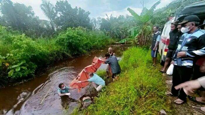 Mayat berjenis kelamin perempuan dalam kondisi mengapung di sungai kecil atau Handil Dahlan sebutan warga setempat.