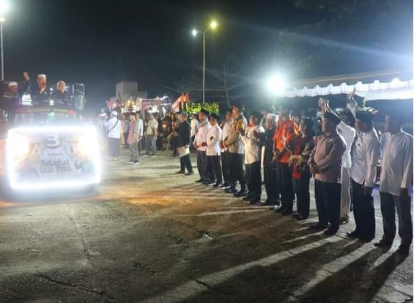 “Sebagaimana kita ketahui bersama, pada malam yang membahagiakan ini, seluruh kaum muslimin di tanah air mengumandangkan Takbir, Tahlil dan Tahmid, untuk mengagungkan kebesaran Ilahi Rabbi, memuji-Nya dan memanjatkan rasa syukur kepada-Nya. Kaum muslimin dengan penuh sukacita merayakan kemenangan dari peperangan yang besar, yaitu perang melawan hawa nafsu. Perang melawan hawa nafsu itu, Insya Allah berhasil kita menangkan dengan penuh rasa penyerahan diri kepada Allah SWT,” kata Kalaksa BPBD Kab.Mura, Fitrianul Fahriman saat membacakan sambutan Pj Bupati Mura.