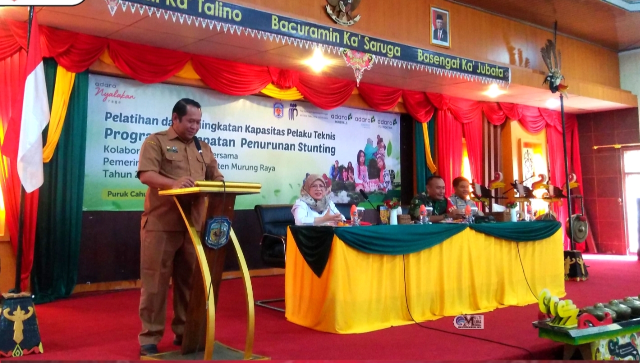PURUK CAHU, onlinesinarbarito.com – Pj Bupati Murung Raya (Mura) melalui Pj Sekretaris Daerah Murung Raya, Rudie Roy membuka secara resmi Pelatihan dan Peningkatan Kapasitas Pelaku Teknis Program Percepatan Penurunan Stunting, Kolaborasi Adaro Group bersama Pemerintah Daerah Kabupaten (Pemkab) Murung Raya (Mura).