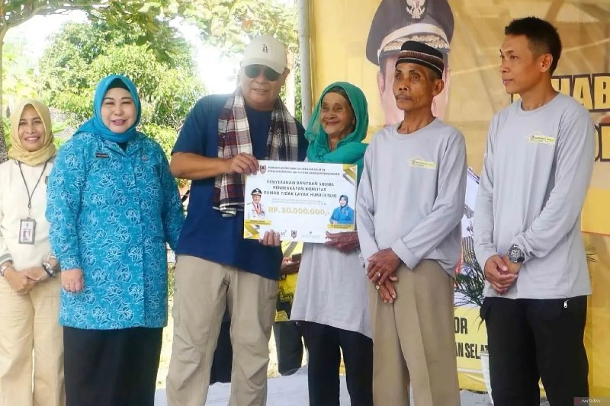 Gubernur Kalimantan Selatan Sahbirin Noor didampingi Ketua TP PKK Kalsel Raudatul Jannah atau Acil Odah di Banjar, Jumat (31/5/2024), menyerahkan bantuan secara simbolis kepada perwakilan penerima manfaat. Menurut Sahbirin, Pemprov Kalsel telah beberapa kali menyalurkan bantuan rehabilitasi rumah dan berencana jumlah rumah menerima bantuan rehabilitasi meningkat pada tahun depan.