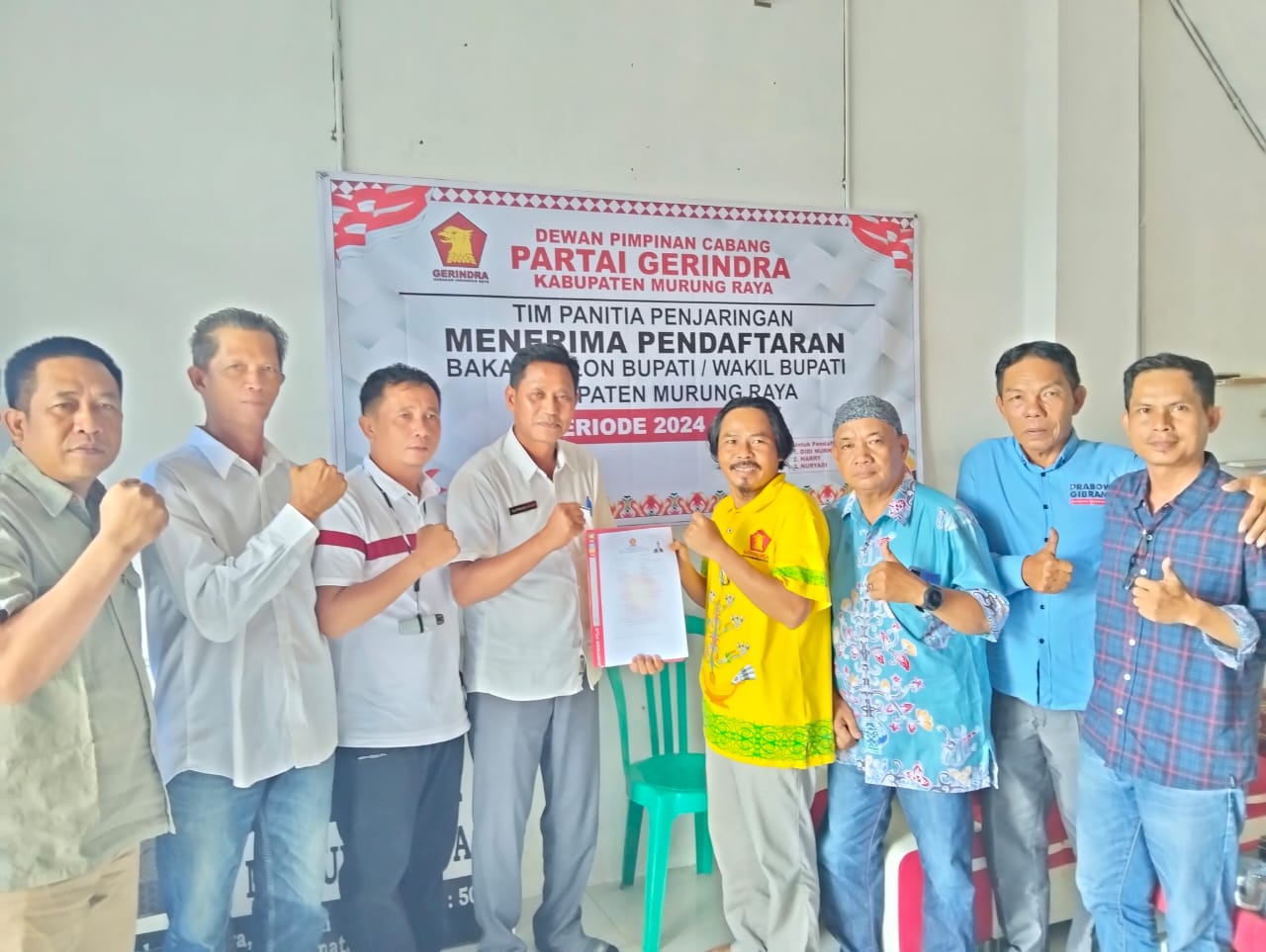 Dirinya juga menyampaikan ucapan terima kasih kepada Tim Penjaringan Bakal Calon dari Partai Gerindra yang telah menerima berkas pendaftarannya sebagai bakal calon Wakil Bupati Murung Raya, seraya berharap bisa mendapatkan dukungan/rekom untuk maju nantinya.