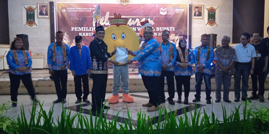 TAMIANG LAYANG, onlinesinarbarito.com – Komisi Pemilihan Umum (KPU) Kabupaten Barito Timur, melaksanakan peluncuran Pemilihan Bupati dan Wakil Bupati Tahun 2024. Acara ini diselenggarakan di Gedung Pertemuan Umum Mantawara Tamiang Layang, Sabtu (1/6/2024) malam.