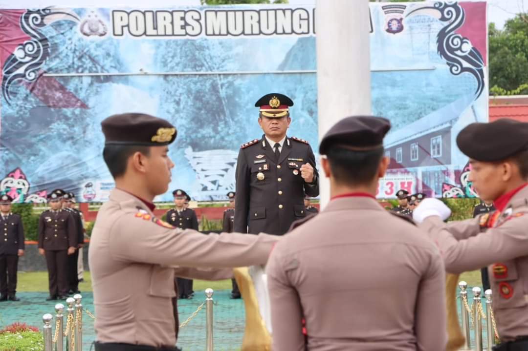 Hadir dalam pelaksanaan upacara tersebut Wakapolres Kompol Triyo Sugiyono, S.H beserta pejabat utama Polres Mura, personil bintara serta ASN Polri Polres Murung Raya.