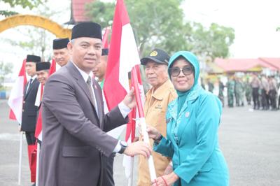 Penyerahan bendera simbolis tersebut dilakukan oleh Pj. Bupati Batola Mujiyat, yang diwakili oleh Sekretaris Daerah Ir. H. Zulkipli Yadi Noor, M.Sc. Program ini merupakan bagian dari peluncuran 10 Juta Bendera Merah Putih secara serentak di seluruh Indonesia, dengan target pembagian di Barito Kuala sebanyak 8.500 bendera.