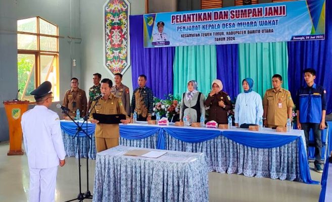 MUARA TEWEH, onlinesinarbarito.com – Pj Bupati Barito Utara Drs Muhlis melantik dan mengambil sumpah janji jabatan Penjabat Kepala Desa Muara Wakat Kecamatan Teweh Timur, Sefendi S.Sos, Selasa (4/6/2024).