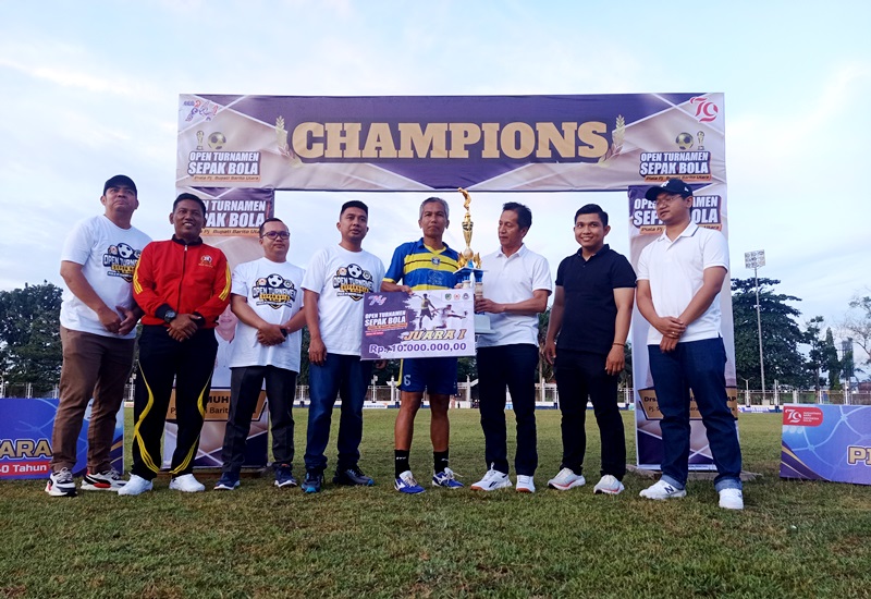 MUARA TEWEH, onlinesinarbarito.com – Tim PU Putra Legend menjuarai tournamen sepak bola U 40 Pj Bupati Barito Utara Cup setelah mengalahkan tim Barito Legend dengan skor 5-4 dengan drama adu finalti. Tim PU Putra legend berhak menerima hadiah piala dan uang pembinaan tunai Rp 10 juta.