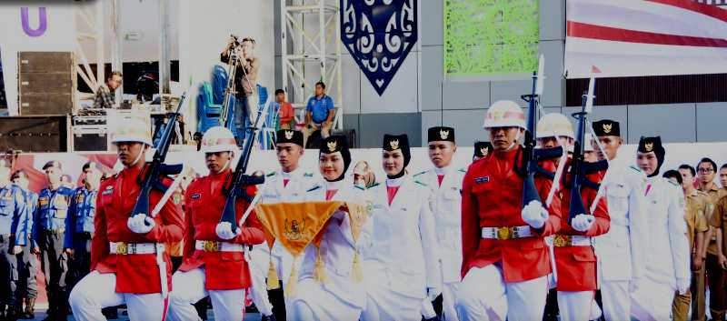 Pj Bupati Barito Utara Muhlis yang menjadi Inspektur upacara menerima bendera Merah Putih yang diserahkan langsung oleh anggota Paskibraka yang terpilih sebagai pembawa baki atas nama Frisca Almagfira Ramadhani siswi SMAN-1 Muara Teweh, sedangkan untuk penggerek bendera Merah Putih atas nama Fikri Hidayat siswa SMAN-1 Teweh Baru, Indra Lesmana siswa MAN Barito Utara dan Fajar Mulia Siswa SMAN-4 Muara Teweh.