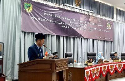 MUARA TEWEH, onlinesinarbarito.com – Pj Bupati Barito Utara Drs Muhlis mengatakan rapat Paripurna Dprd Kabupaten/Kota dengan agenda khusus pengucapan sumpah/janji Anggota DPRD Kabupaten/Kota merupakan hasil pemilihan umum tahun 2024 merupakan puncak dari seluruh rangkaian proses pelaksanaan pemilihan umum anggota DPRD, yang secara filosofis berkedudukan sebagai sarana demokrasi yang diartikan untuk melaksanakan kedaulatan rakyat dalam tatanan pemerintahan NKRI.