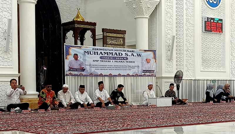 MUARA TEWEH, onlinesinarbarito.com – Di penguhujung bulan Rabiul Awal 1446 Hijriah, Keluarga Besar SMP Negeri 1 Muara Teweh memperingati Maulid Nabi Muhammad SAW, di Islamic Center Masjid Haji Muhammad Sidq, Rabu (2/10/2024).