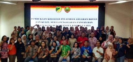 Pelatihan pengelolaan pangan dan packiang, pelatihan anyaman rotan dan kulit dibuka Kepala Dinas Dagrin Barito Utara Dewi Handayani dan dihadiri Plt Kepala Bidang Perindustrian Provinsi Kalimantan Tengah Simon F Obos, Ervin Yuani Sius (Pahari Tungal) dan Yuliatma (Tampung Parei) yang sudah menghasilkan produk Nasional dan ekspor serta Sri Makmuroh (Rumah Produksi Mayodha) dan peserta pelatihan.