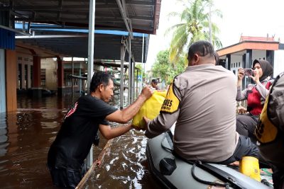 Disamping melakukan patroli, Polres Barito Utara juga menunjukkan kepedulian terhadap warga yang terdampak dengan menyediakan bantuan sembako kepada mereka (warga yang terdampak banjir-red) yang memerlukan.