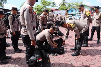 MUARA TEWEH, onlinesinarbarito.com – Kapolres Barito Utara, AKBP Gede Eka Yudharma, S.I.K., M.A.P., melakukan pengecekan langsung terhadap kesiapan personel dan perlengkapan yang akan dibawa dalam pengamanan tempat pemungutan suara (TPS) di Kabupaten Barito Utara. Kegiatan ini bertujuan memastikan kesiapan seluruh personel dalam mendukung pelaksanaan Pilkada Serentak 2024 yang akan segera berlangsung.
