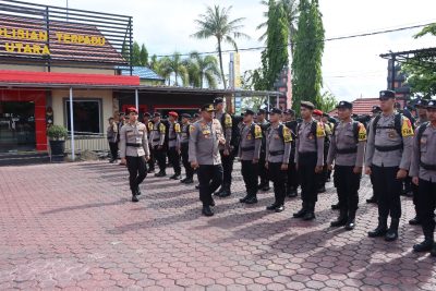 MUARA TEWEH, onlinesinarbarito.com – Kapolres Barito Utara, AKBP Gede Eka Yudharma, S.I.K., M.A.P., memimpin apel kesiapan pengamanan tempat pemungutan suara (TPS) di Kabupaten Barito Utara. Apel ini merupakan langkah persiapan untuk menyukseskan Pilkada Serentak 2024 yang akan segera berlangsung. Kegiatan tersebut dilaksanakan di halaman Polres Barito Utara pada Selasa (5/11/2024) pagi.