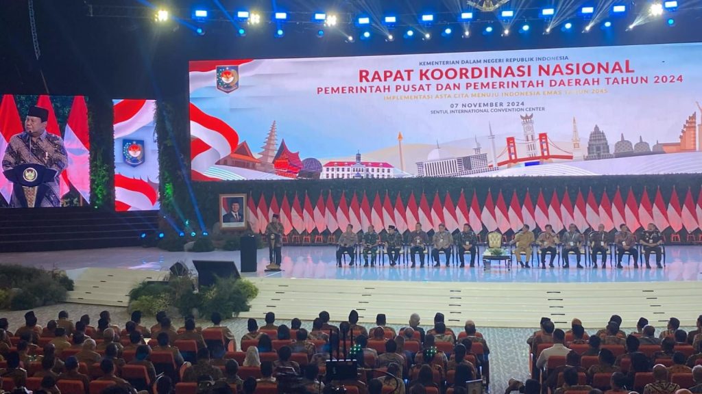 “Kepada seluruh kepala daerah harus mampu mengambil keputusan agar menyelesaikan masalah yang ada di daerah. Tak hanya sekadar sebagai pemangku kebijakan saja,” pungkasnya. Terakhir, Prabowo pun mengapresiasi inisiatif dari Kementerian Dalam Negeri yang dipimpin oleh Tito Karnavian karena bisa menyelenggarakan forum yang melibatkan peserta lebih dari 5.000 orang tersebut.