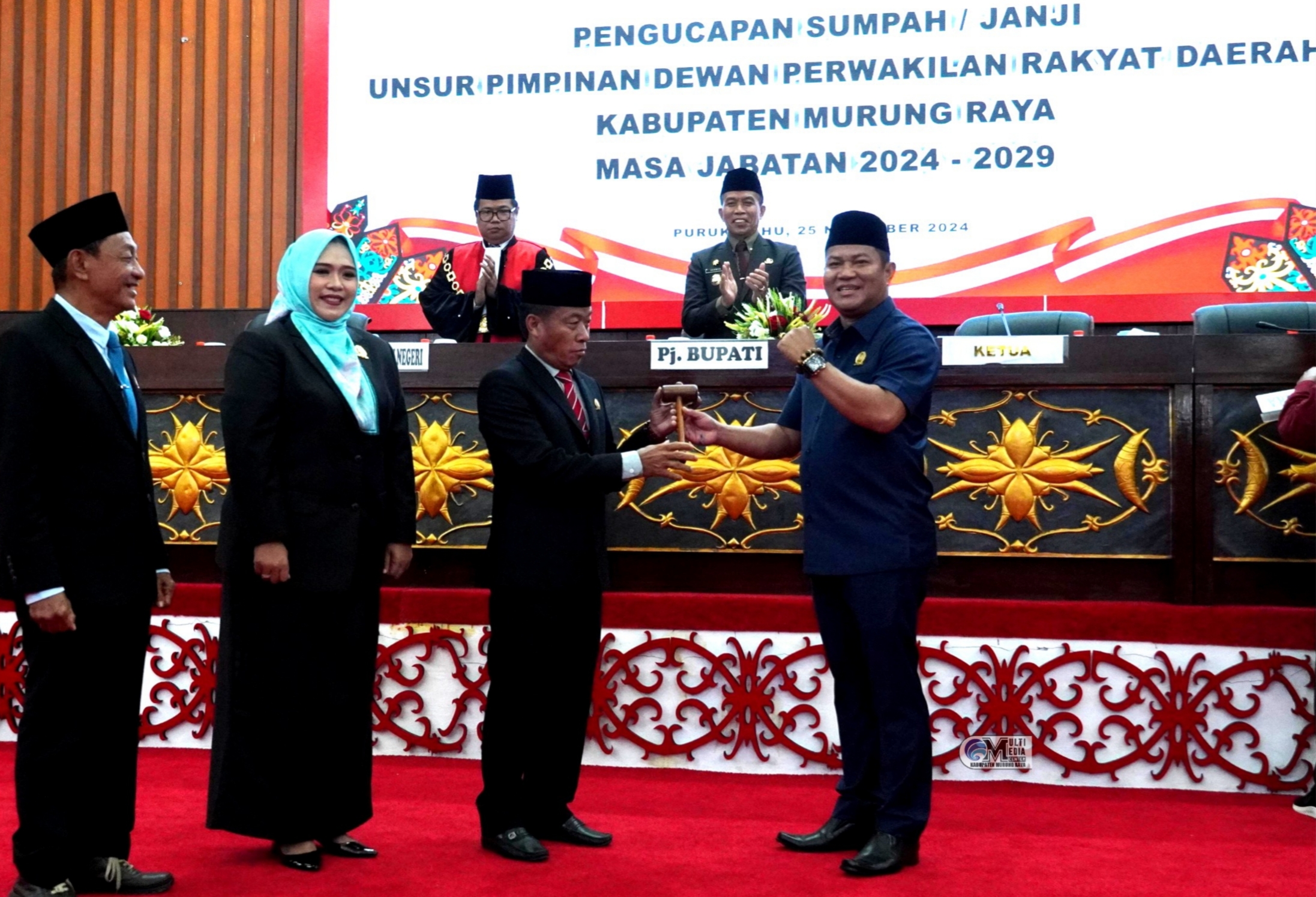 Pelantikan pimpinan definitif DPRD ini dihadiri oleh Penjabat (Pj) Bupati Murung Raya, Dr. Hermon, Ketua sementara DPRD Murung Raya, Bebie, serta Anggota DPRD dan Pj Sekda Murung Raya, Rudie Roy, unsur Forkopimda dan sejumlah Kepala Perangkat Daerah lingkup Pemkab Murung Raya, pada Senin (25/11/2024).