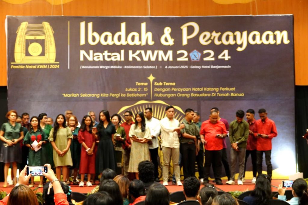 BANJARBARU, onlinesinarbarito.com – Kerukunan Warga Maluku (KWM) di Kalimantan Selatan melangsungkan Ibadah dan Perayaan Natal 2024 di Hotel Galaxy Banjarmasin, Sabtu (04/01/2025).