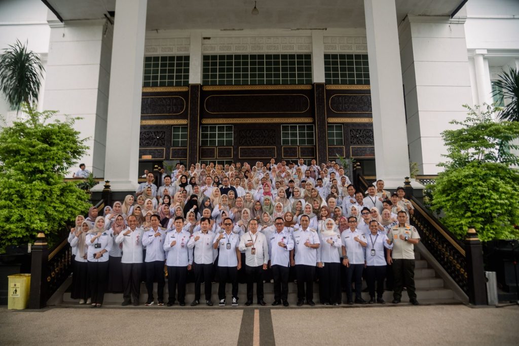 Tampak hadir pada apel itu Asisten, Kepala Biro serta jajaran pegawai ASN dan non-ASN lingkup Sekretariat Daerah Provinsi Kalsel.