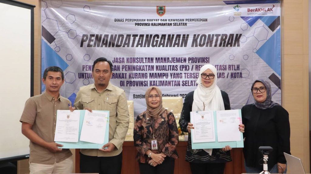 BANJARBARU, onlinesinarbarito.com – Dinas Perumahan Rakyat dan Kawasan Permukiman Provinsi Kalimantan Selatan (Perkim Prov. Kalsel) mengadakan penandatanganan kontrak dengan beberapa konsultan manajemen provinsi dalam rangka meningkatkan kualitas rehabilitasi Rumah Tidak Layak Huni (RTLH) di Aula Kantor, Banjarbaru, Jumat (14/2/2025).
