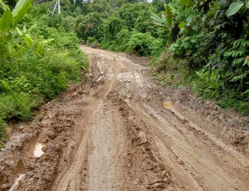 “Kami kasihan, hasil pertanian kami terhambat karena jalan yang rusak parah, tetapi tidak ada aksi dari perusahaan yang memiliki alat berat di sana,” ungkapnya.