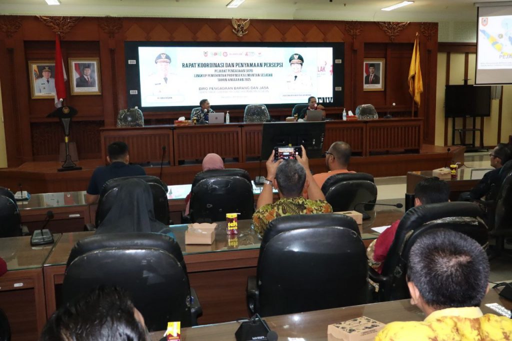 Kepala Biro PBJ Kalsel, Rahmaddin yang diwakili oleh Plh, Khairil Anwar yang juga sebagai Kepala Bagian Pembinaan dan Advokasi Pengadaan Barang dan Jasa menyebutkan kepada seluruh peserta Rapat Koordinasi dan Penyamaan Persepsi bagi Pejabat Pengadaan Barang dan Jasa di ruang rapat H Maksid, Banjarbaru.