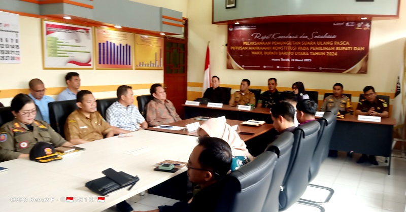 MUARA TEWEH, onlinesinarbarito.com – Komisi Pemilihan Umum (KPU) Kabupaten Barito Utara menggelar rapat koordinasi (Rakor) tindak lanjut terkait Putusan Mahkamah Konstitusi (MK) atas Perselisihan Hasil Pemilihan Bupati dan Wakil Bupati Barito Utara Tahun 2024.