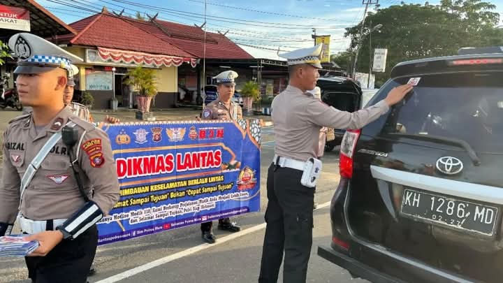 PURUK CAHU, onlinesinarbarito.com – Kepolisian Resor Murung Raya (Mura), melalui Satuan Lalu Lintas genjar lakukan Sosialisasi “Mudik Aman keluarga nyaman” dipimpin langsung oleh KBO Lantas Ipda Toni Manurung mewakili Kasat Lantas Polres Murung Raya, Ipru Hana Cahyadi dengan memasang stiker langsung pada Mobil dan Sepeda Motor di Jl. Jenderal Sudirman Kota Puruk Cahu, Senin (17/3/2024) sore.