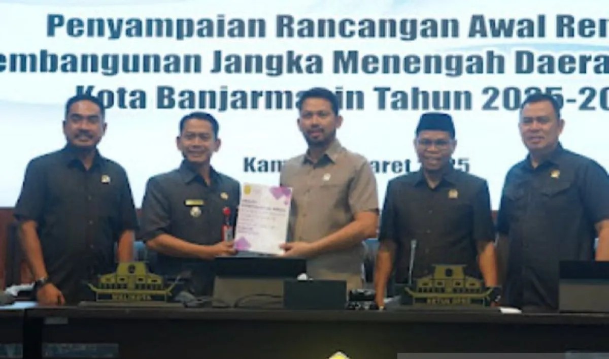BANJARMASIN, onlinesinarbarito.com – DPRD Kota Banjarmasin, Kalimantan Selatan menerima penyampaian rencana awal Rancangan Awal Rencana Pembangunan Jangka Menengah Daerah (RPJMD) Kota Banjarmasin tahun 2025-2029 yang diajukan pemerintah kota setempat.